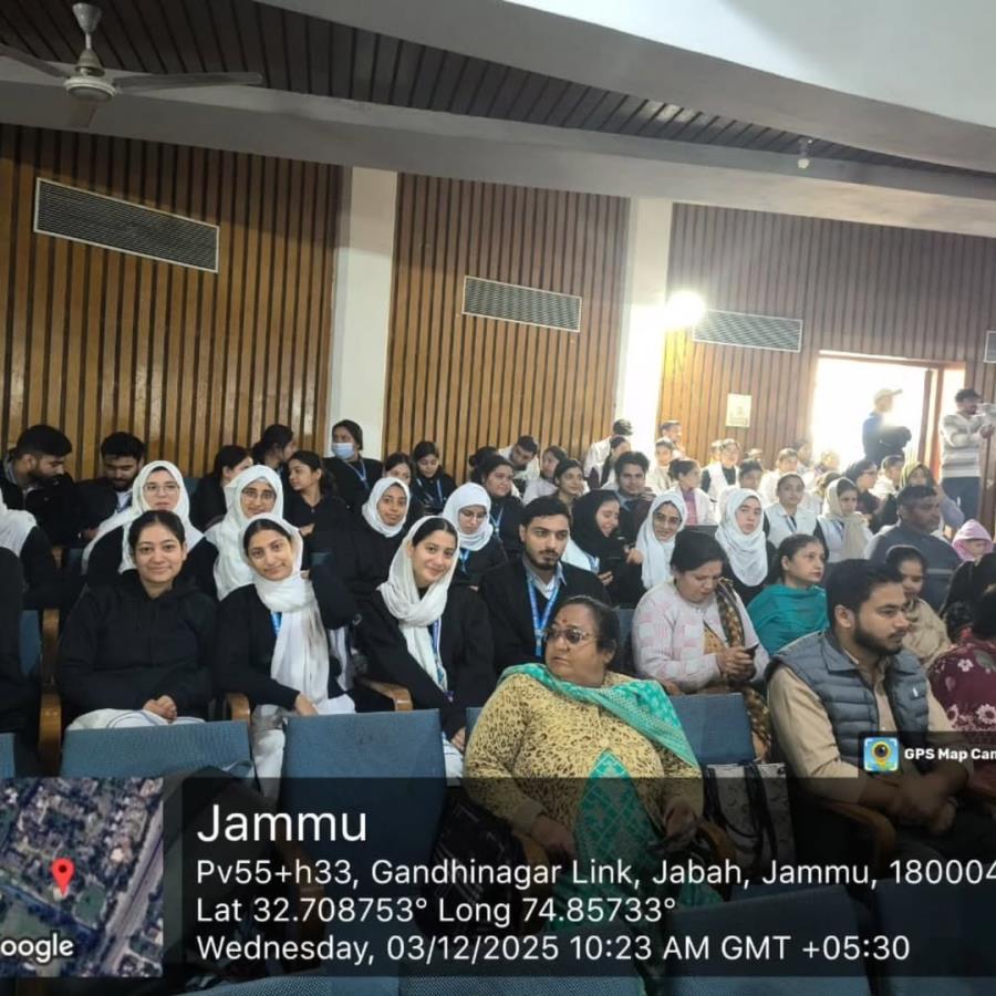 CRC Jammu observed the International Day of Persons with Disabilities on December 3, 2025, at the auditorium of Government College for Women, Gandhinagar. The programme was graced by the distinguished presence of faculty members, including Mrs. Sain Priya (Head, Child Health Nursing), Mrs. Poonam Bhullar (Assistant Professor), Mrs. Rimple Pathania (Nursing Tutor), and Mrs. Aditi Kachroo (Nursing Tutor).