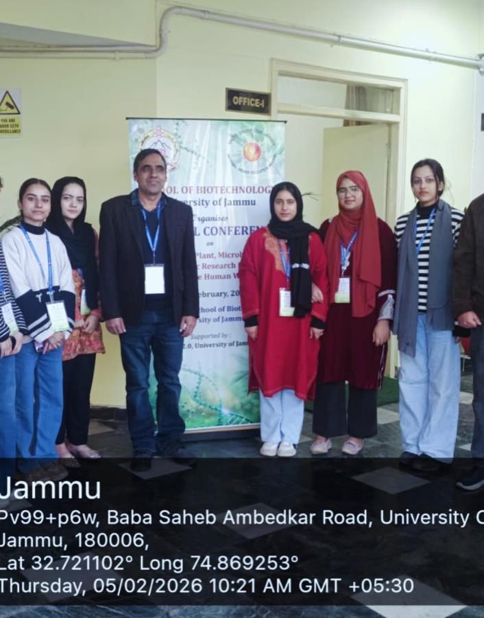 Students of Bee Enn College of Nursing, Jammu, from B.Sc. MLT 2nd Year, visited the University of Jammu to participate in a two-day National Conference held from 4th–5th February 2026 at the School of Biotechnology. The conference focused on integrating plant, microbial, and genetic research for sustainable human welfare and provided a valuable platform for academic learning and research exposure.